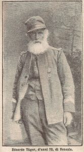 Partecipò giovanissimo alla campagna del 1866 nel Trentino, distinguendosi a Bezzecca. Nel 1870 trovavasi con le truppe italiane che entrarono in Roma. Ora si è arruolato volontario e la sua fibra robustissima ancora ed il suo ardore giovanile gli consentono infatti di sopportare le dure fatiche della guerra. Fra giorni raggiungerà sul fronte il reggimento al quale è stato assegnato.